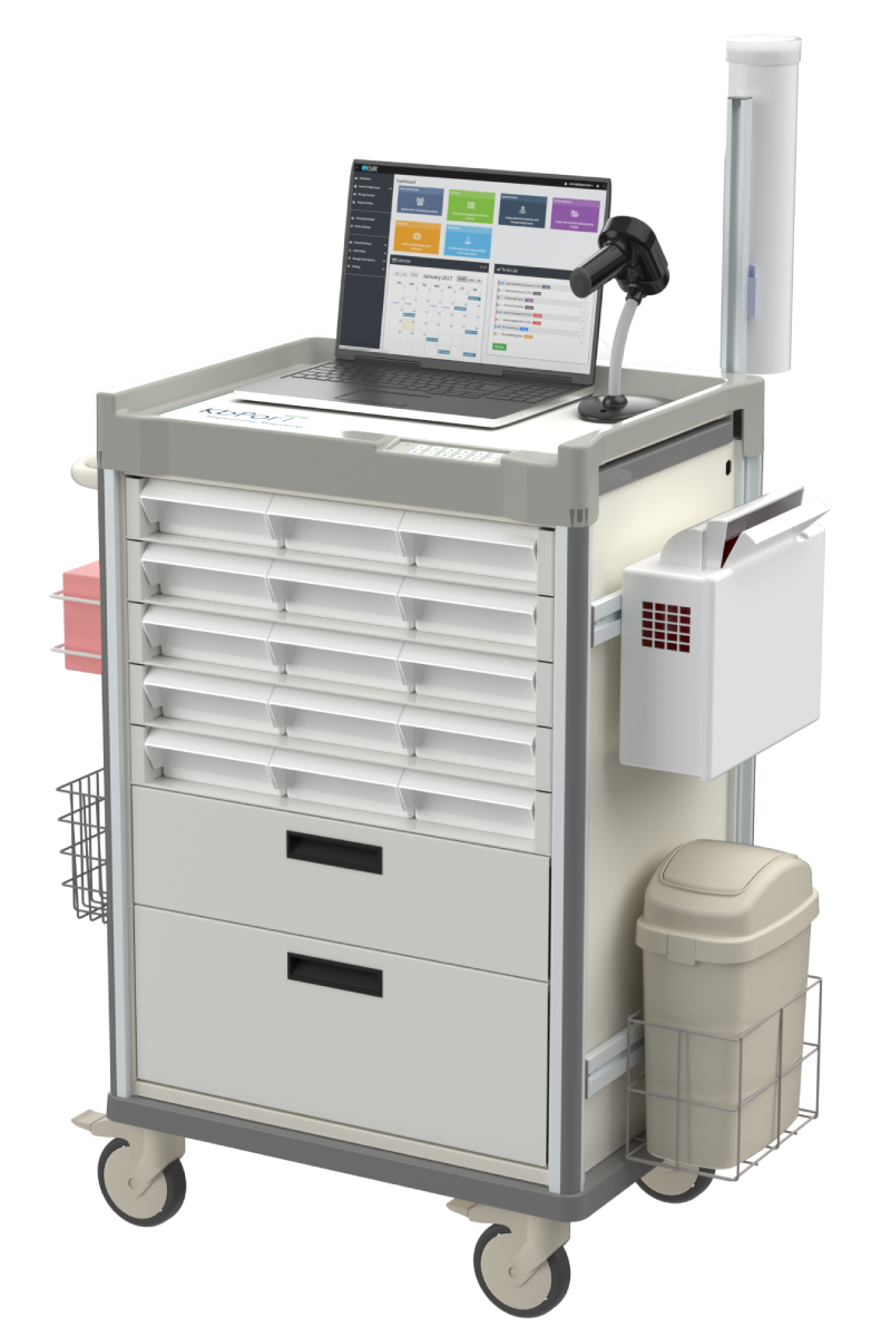 - Manual & electronic unlocking, independently operated bins & drawers via MedsManager